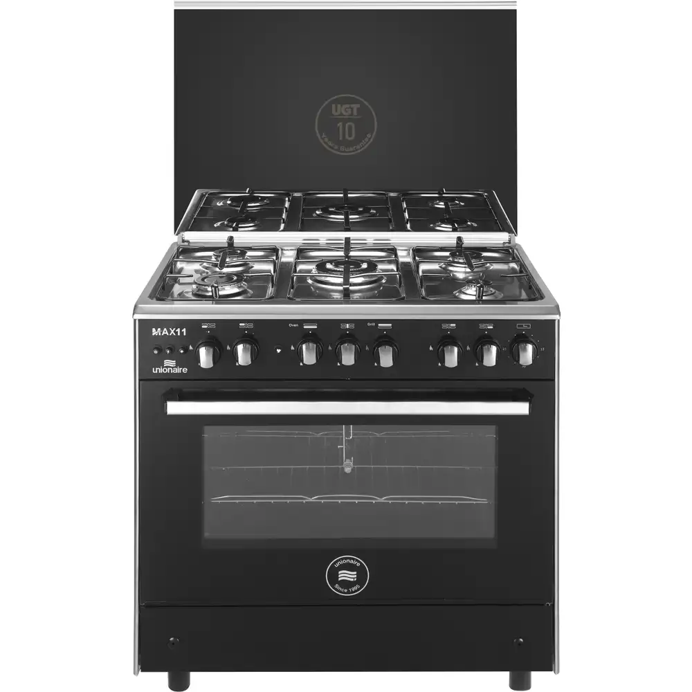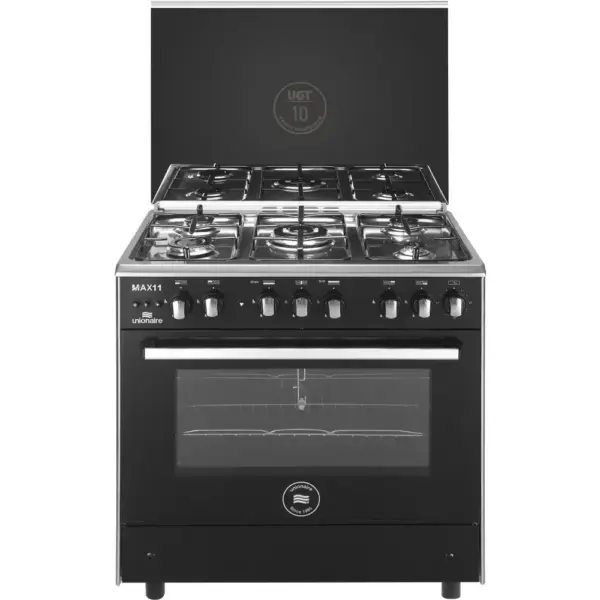 بوتاجاز غاز ماكس 11 يونيون اير، 5 شعلة، 60×80 سم، نصف أمان، C68SS-GC-447-FSO-M11-AL – اسود فضي