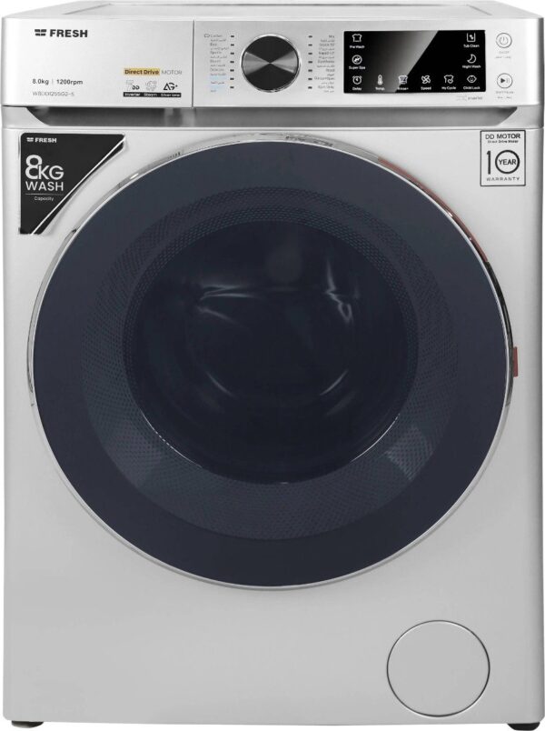 غسالة ملابس فول اوتوماتيك فريش، ديجيتال، 8 كجم، 1200 لفة، 17781 W8DD1255G2S – فضي